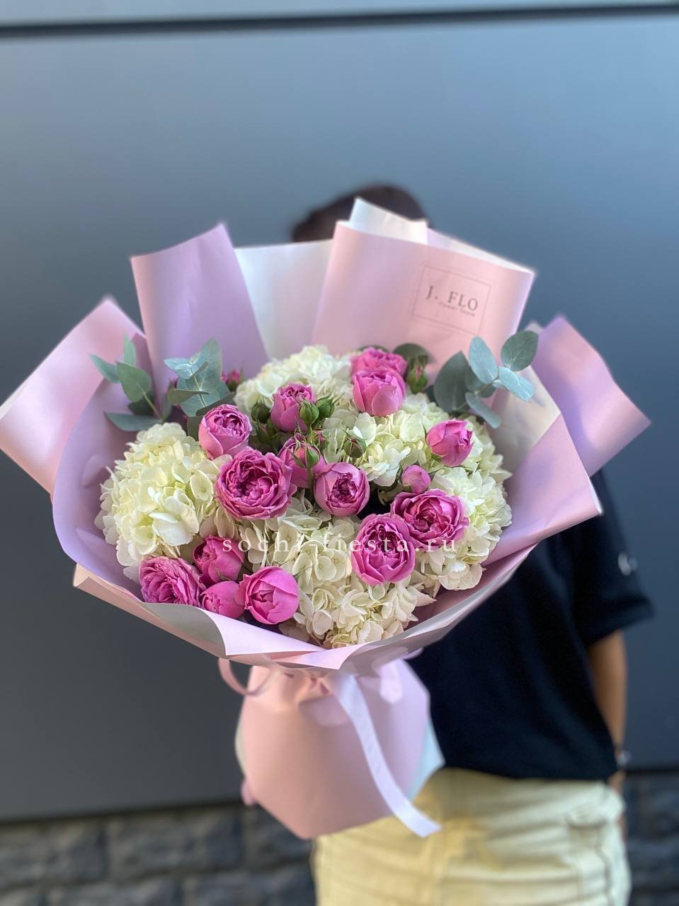 вывернутые розы, эвкалипт, лента, авторская упаковка.