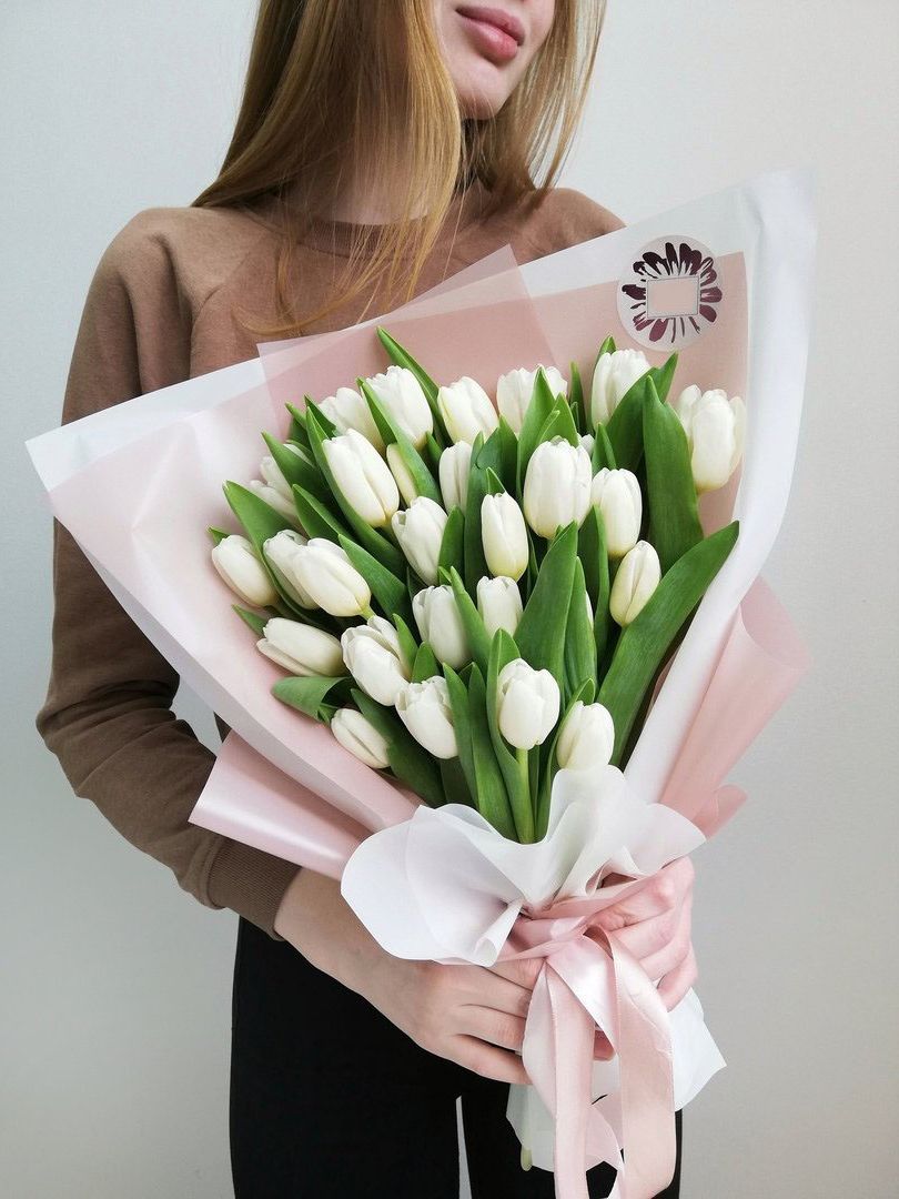 белые тюльпаны - количество на выбор, авторское оформление.