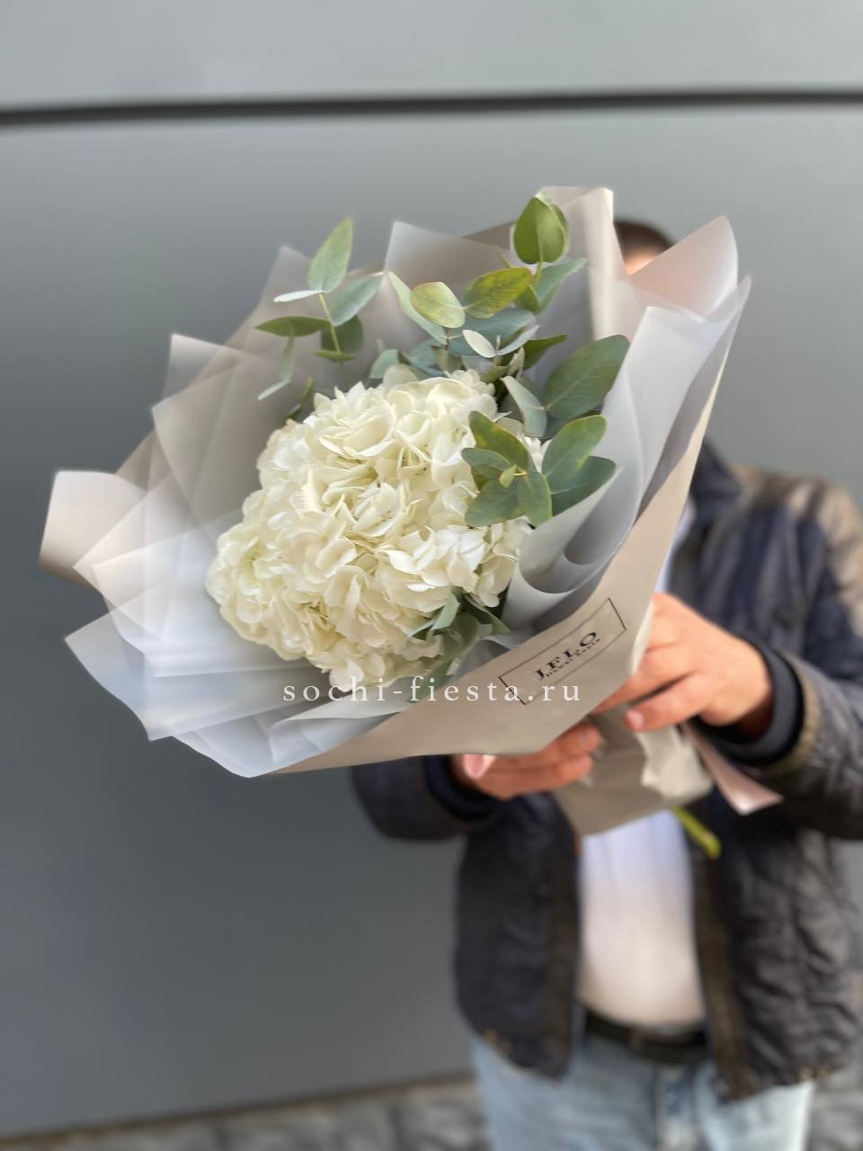 гортензия - 3 шт., лента, дизайнерская упаковка.