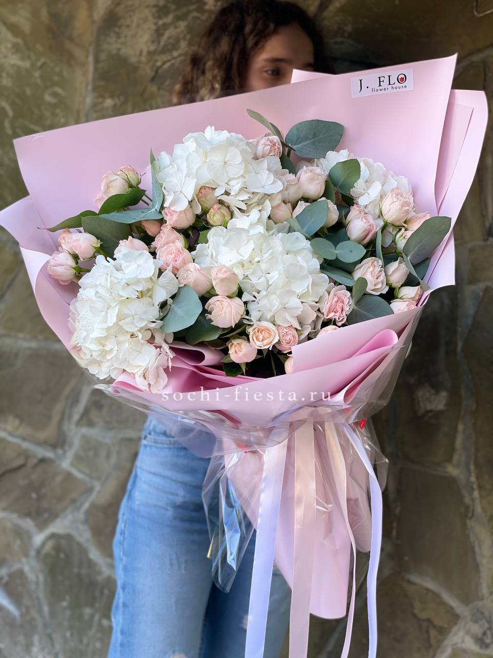 пионовидная кустовая роза Porcelain Lace/бомбастик, лента, авторская упаковка.