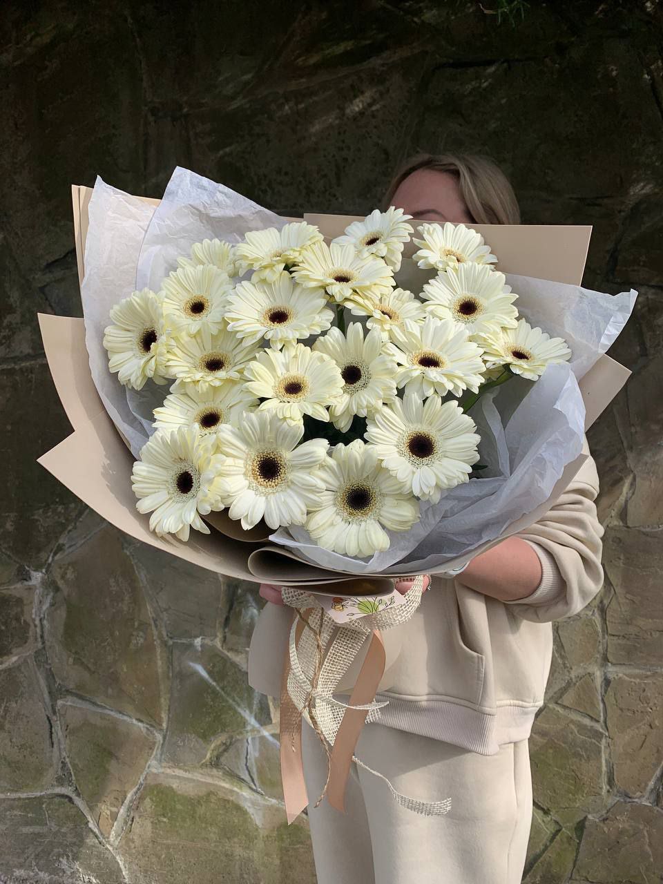 Герберы 7 шт., крафт, тишью, лента.