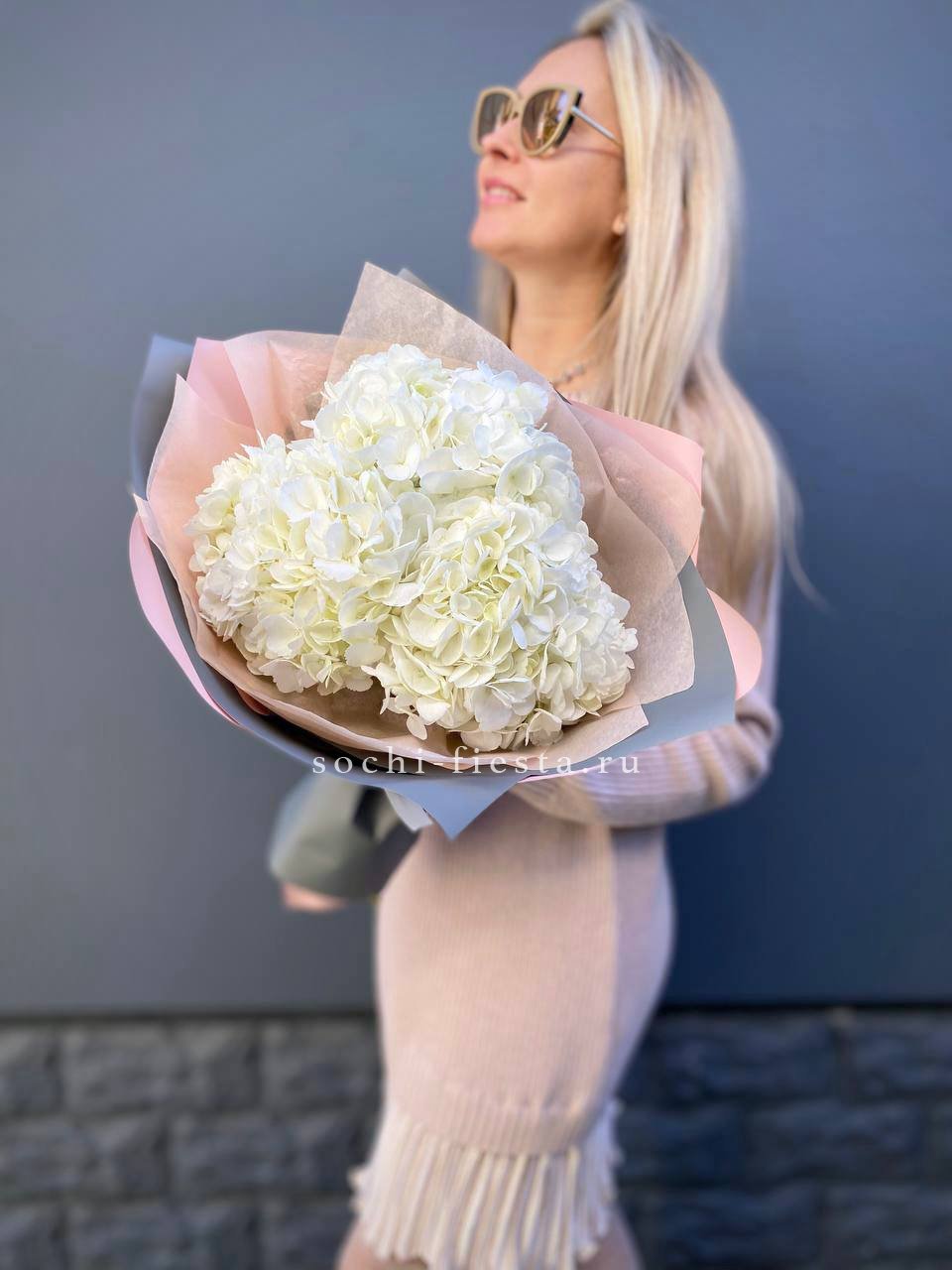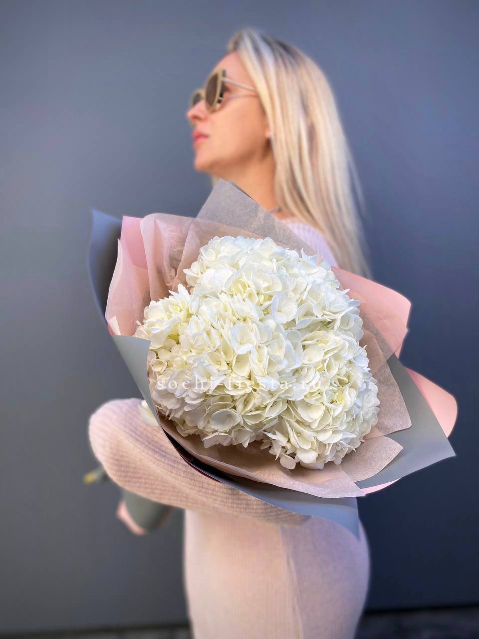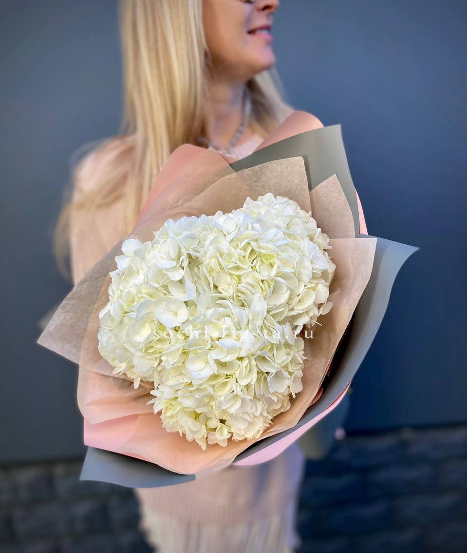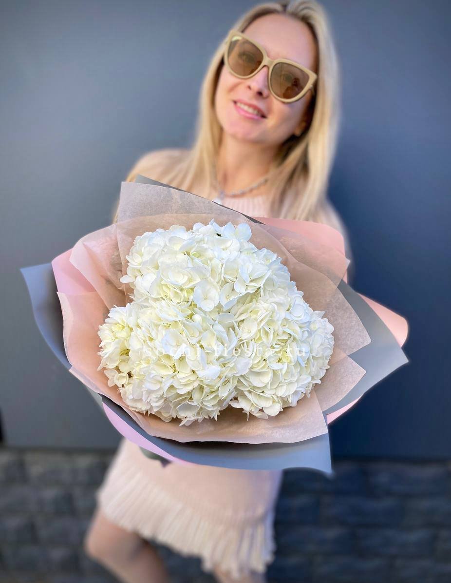 Для заказа товара "Букет из трёх белых гортензий" с доставкой в Ульяновске нажмите в корзину