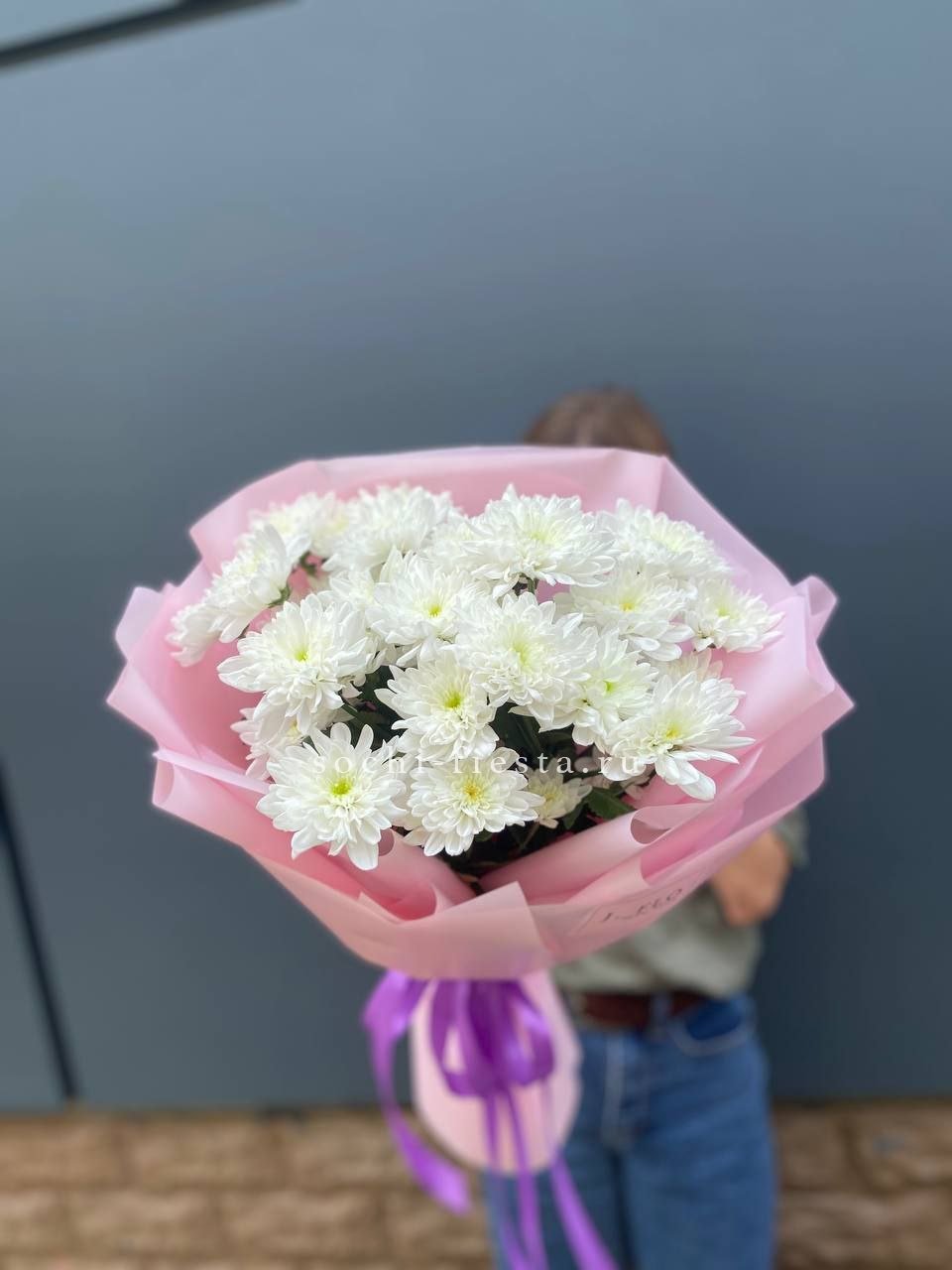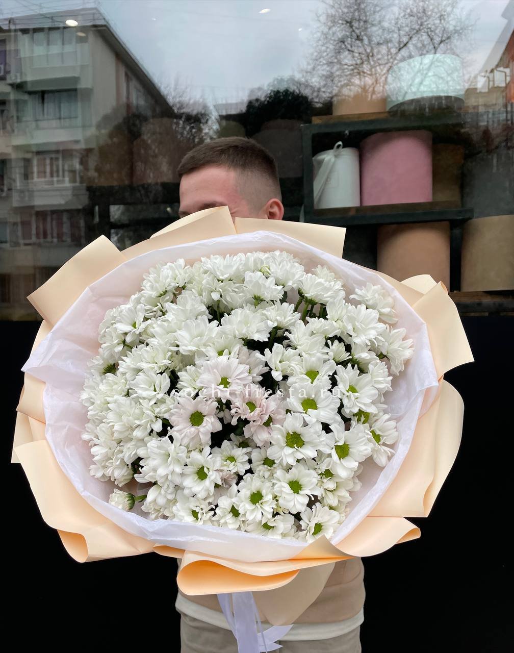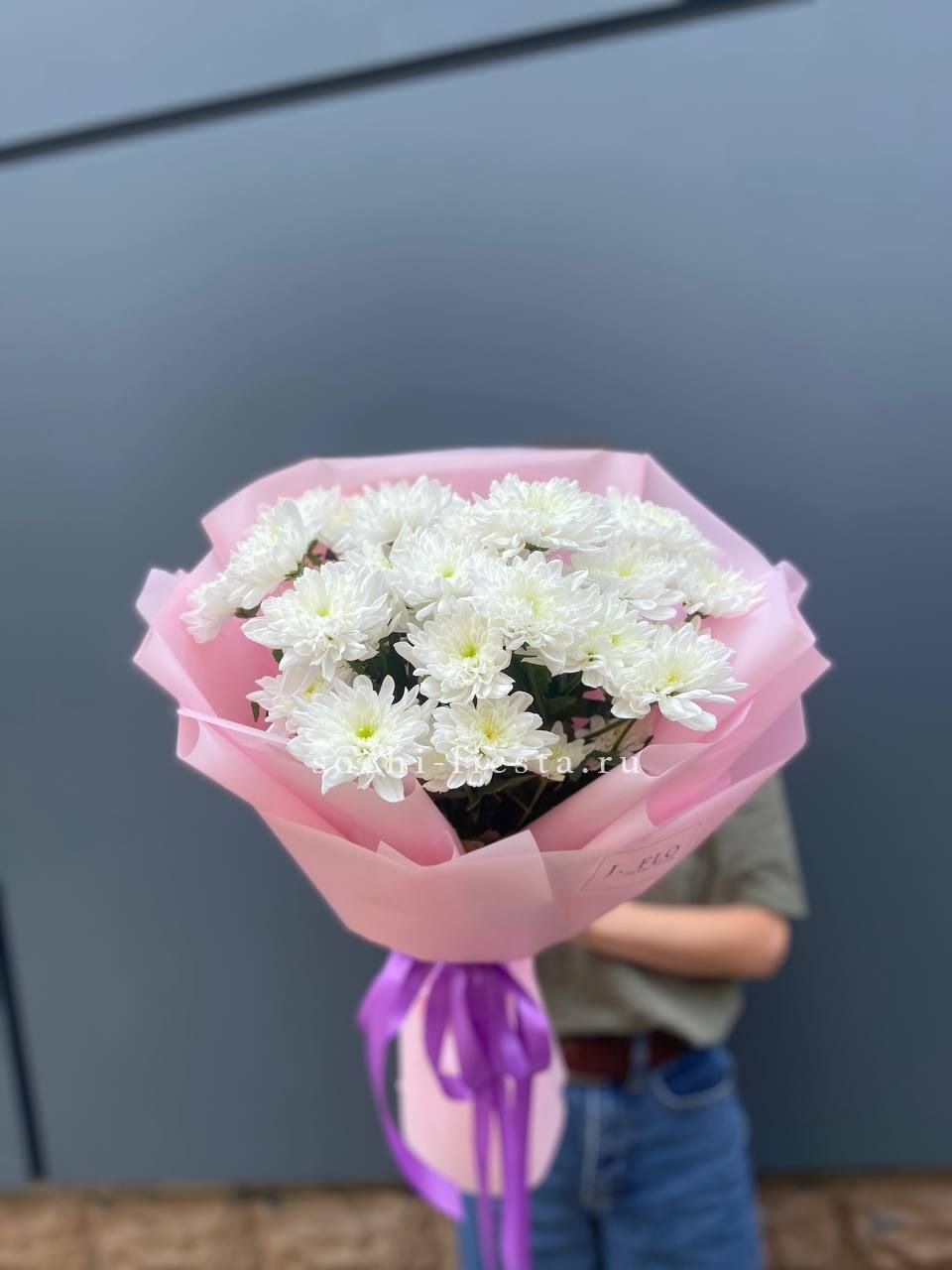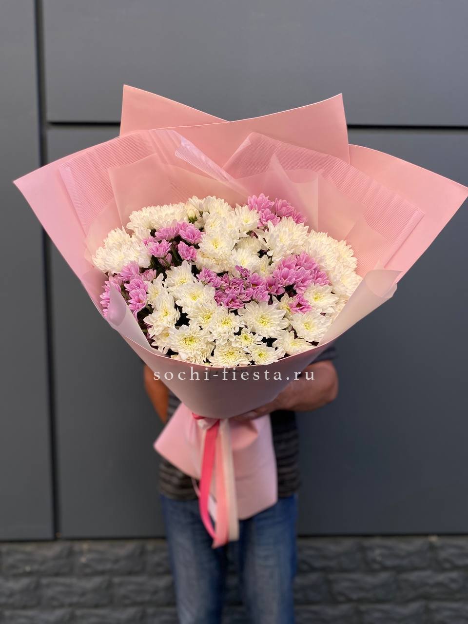 хризантема кустовая - 5 шт., лента, дизайнерская пленка.