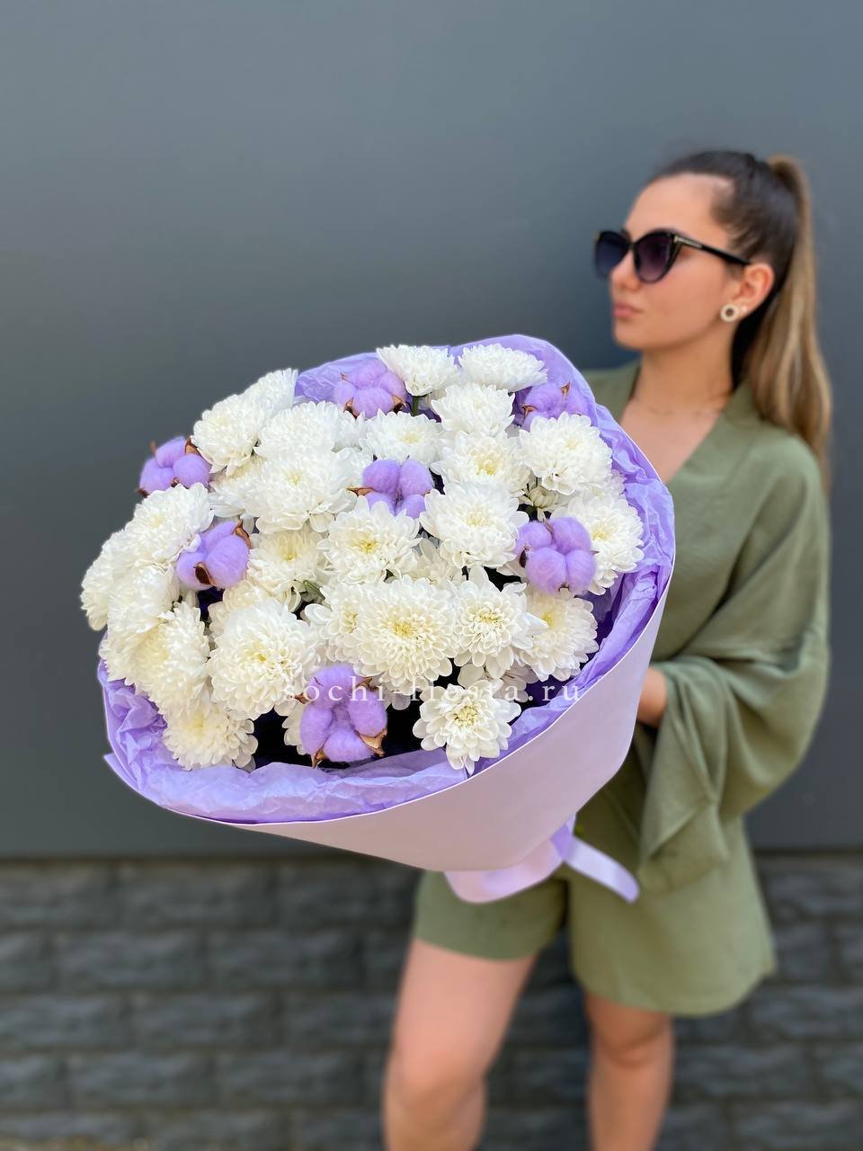 Для заказа товара " Букет хризантем и хлопка" с доставкой в Ульяновске нажмите в корзину