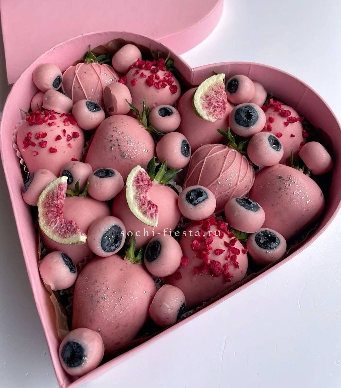 Спелая клубника погружена в глянцевый бельгийский шоколад и уложена в коробку-сердце. Каждая ягода сохраняет сочность под хрустящей шоколадной оболочкой. Дополнение к цветам для тех, кто ценит настоящий вкус.