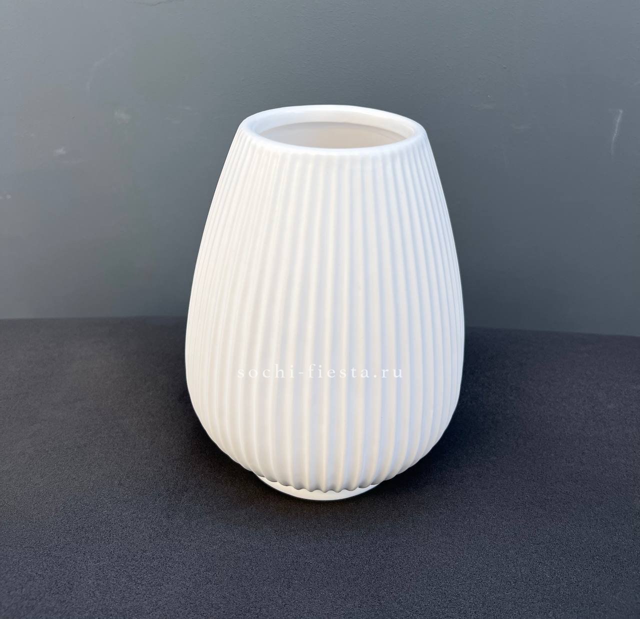 Белая керамическая ваза с лаконичными формами и универсальным характером. Подходит для живых букетов и сухоцветов, легко вписывается в разные интерьерные решения. Объем позволяет размещать композиции из нескольких стеблей.