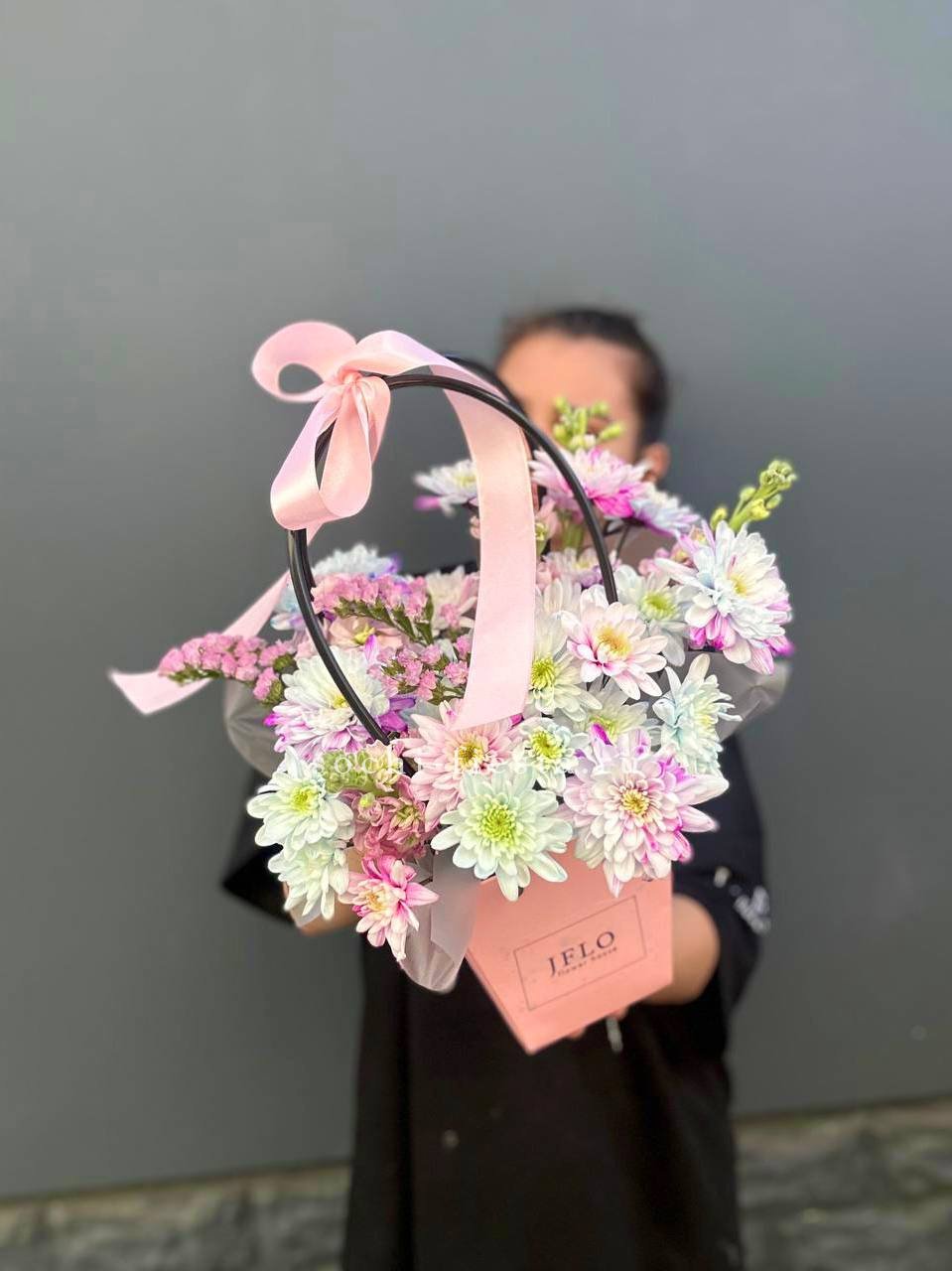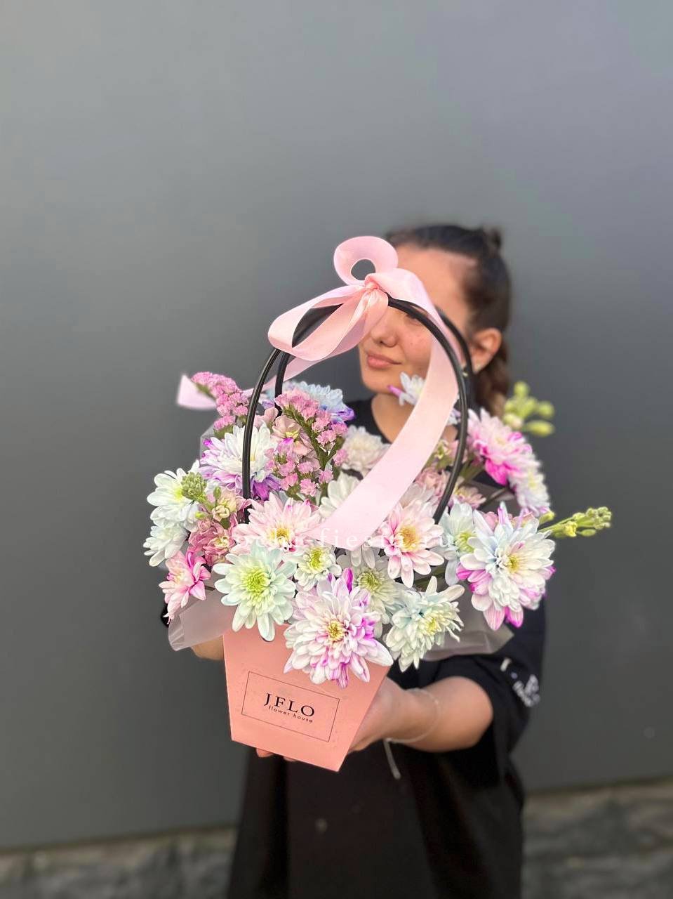 хризантемы, герберы, розы, антиринум, диантус, гортензия, бомбастик, озатамус в коробке или корзине на выбор.