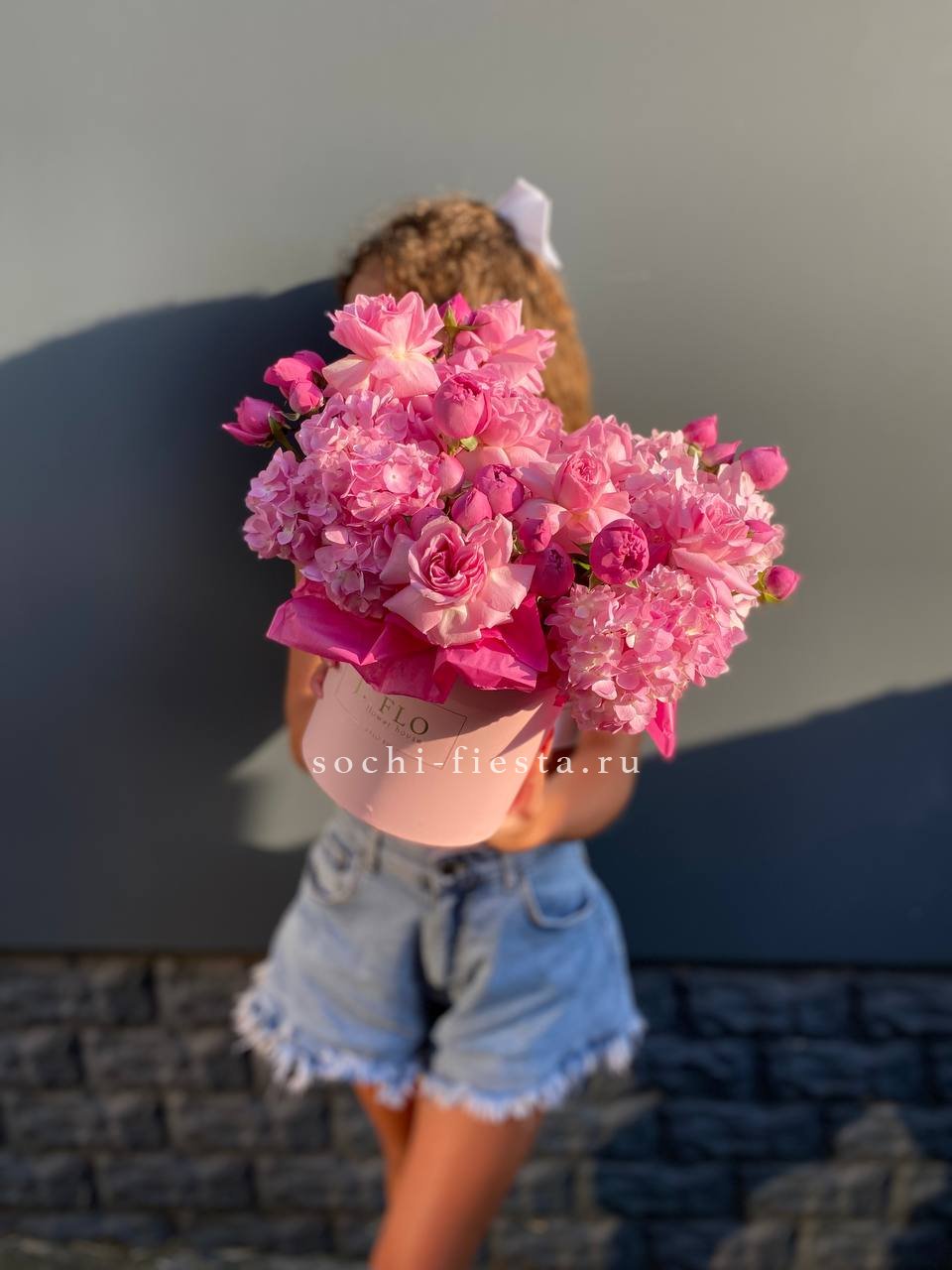 мисти баблс, гортензия, розовая роза, коробка размер 16D.