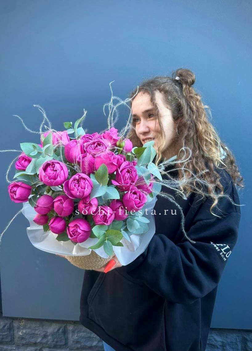 Для заказа товара "Пионовидные розы в джутовом кашпо " с доставкой в Ульяновске нажмите в корзину