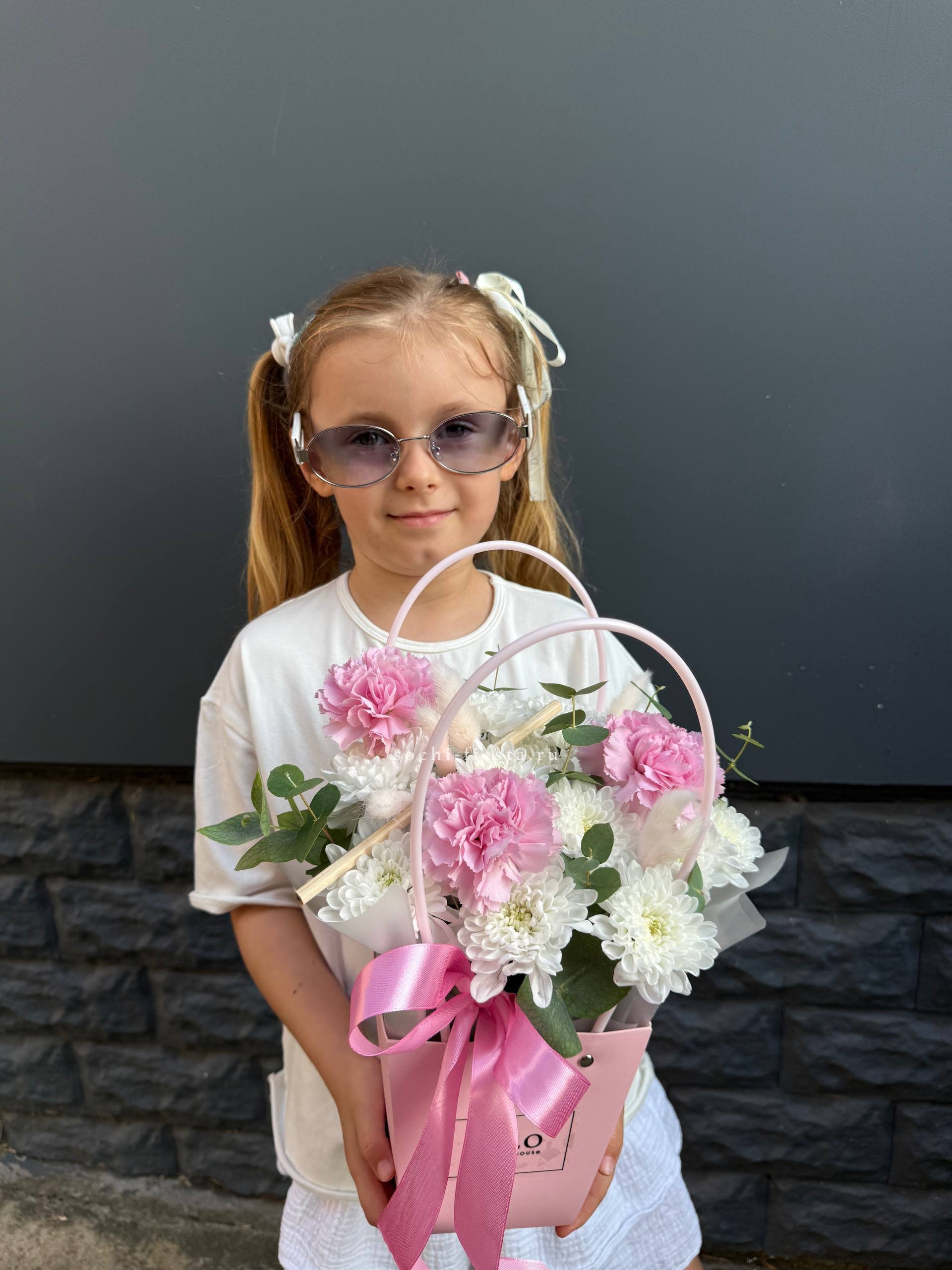 Для заказа товара "Сумочка из стойких хризантем и диантуса" с доставкой в Ульяновске нажмите в корзину