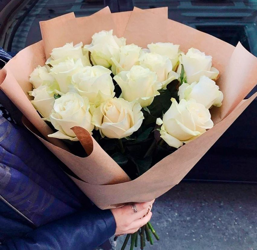 белые розы 35 шт., лента, упаковка на выборВы можете выбрать любое количество.