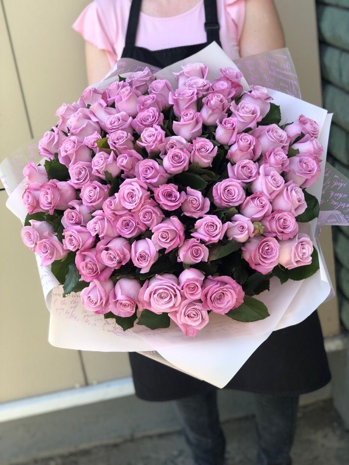 Семьдесят одна роза сорта Маритим образует объемную композицию с плотной структурой. Розовые лепестки создают мягкое цветовое пятно, которое заполняет пространство и удерживает внимание.