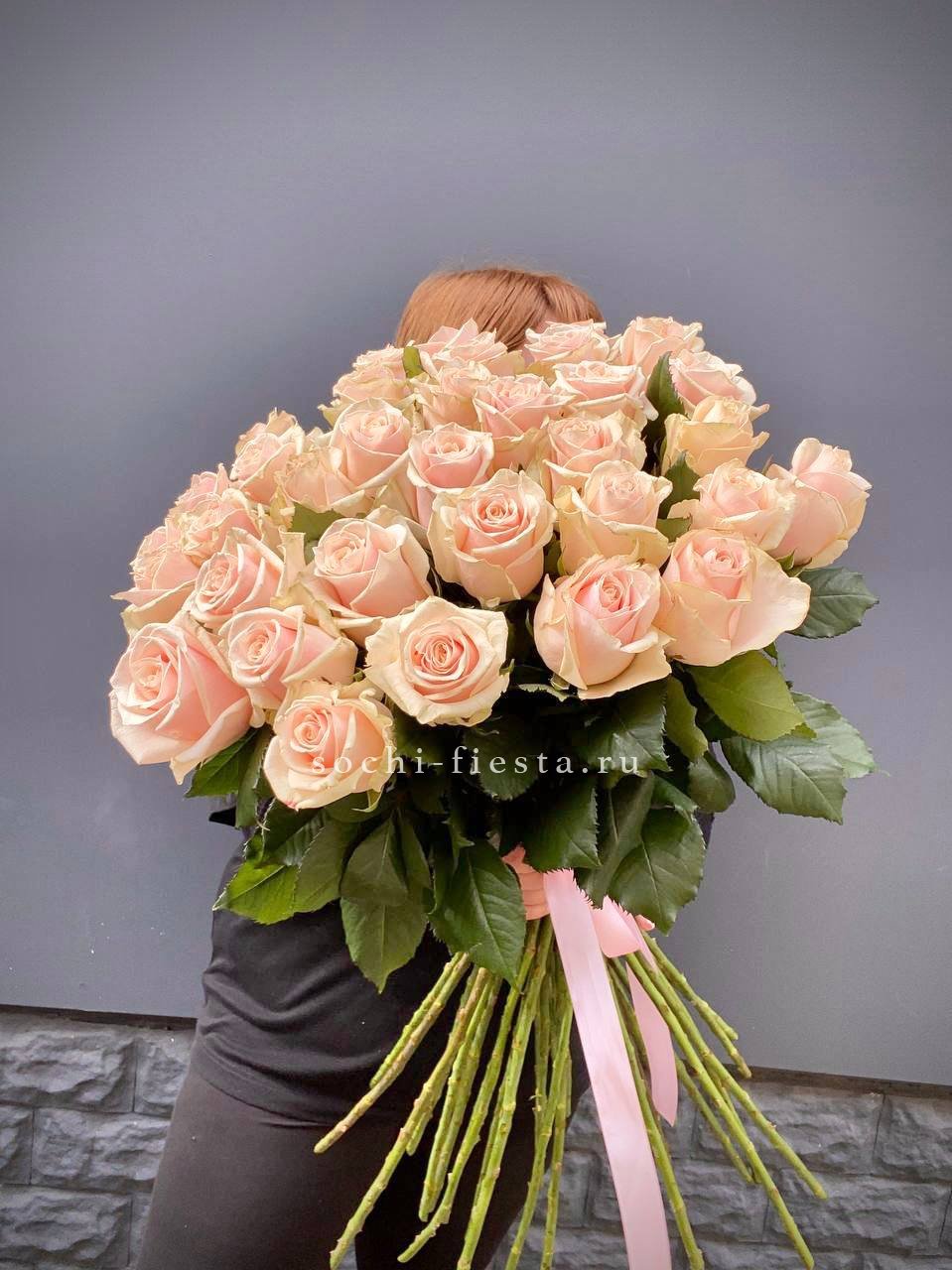 25 кремовых роз, лента, упаковка на выбор.