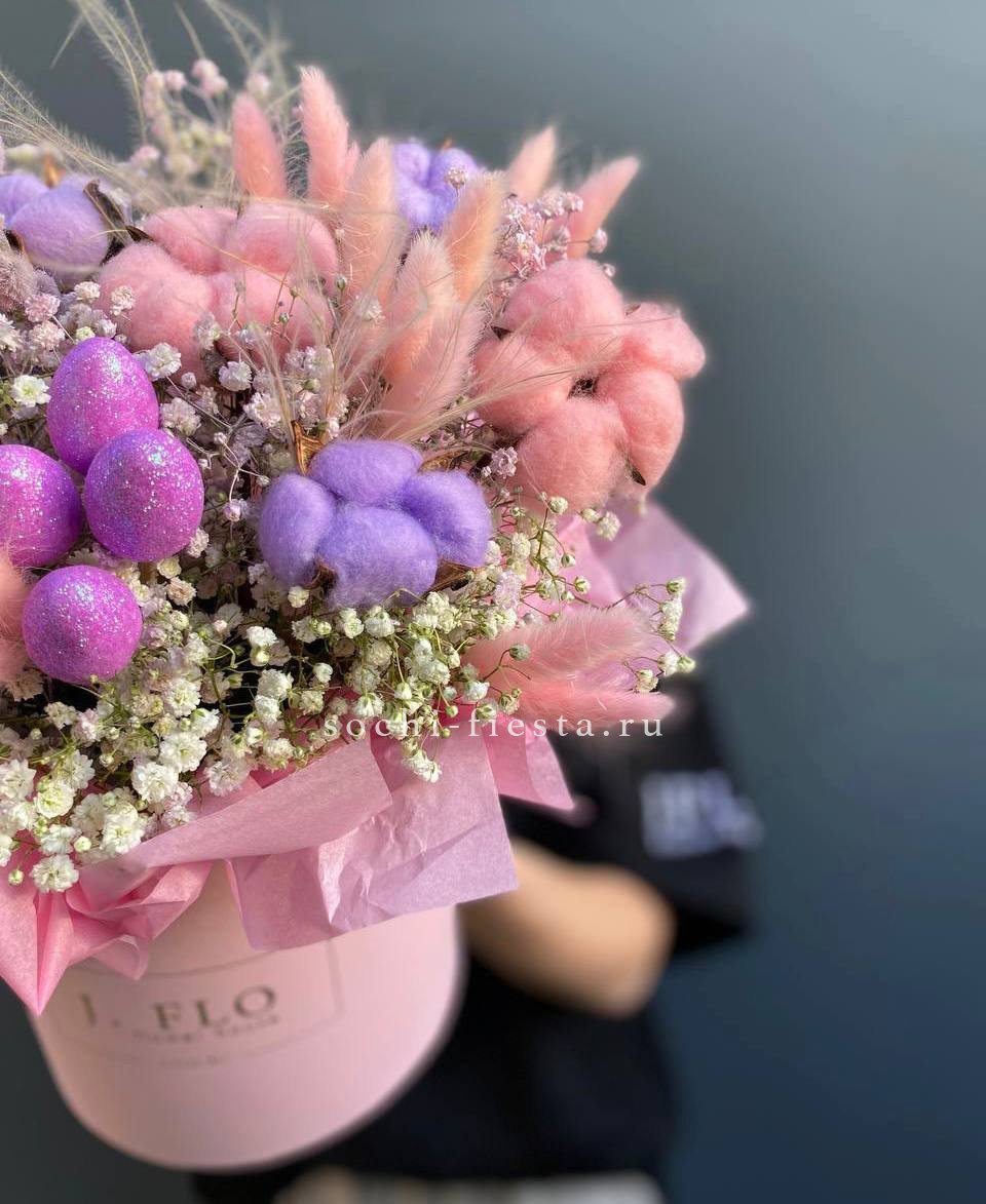 гипсофила, хлопок, верба, ковыль, яйца, лагурус,  тишью, цилиндр D16.